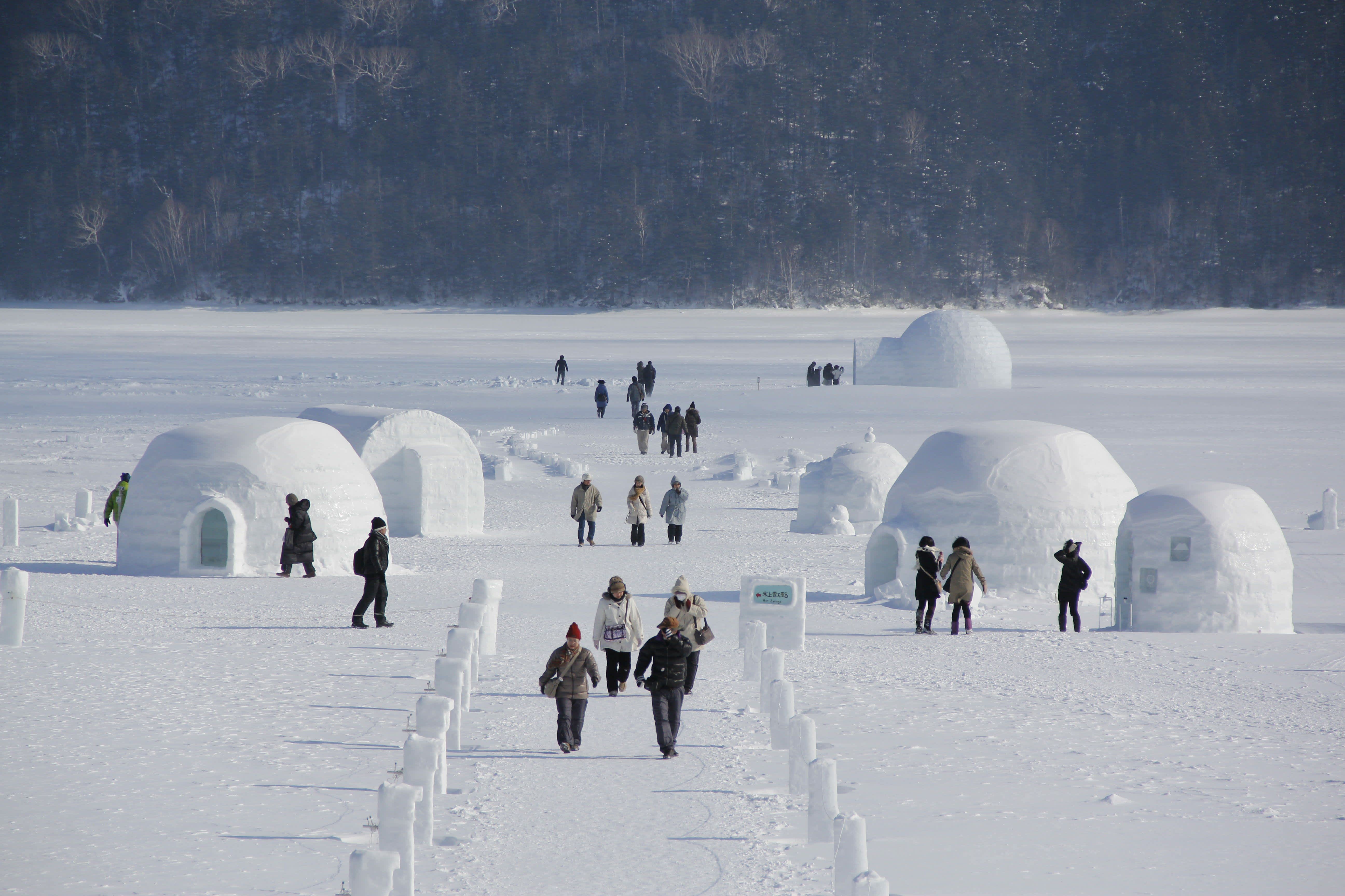 Tại Shikaribetsuko-Kotan, du khách sẽ bắt gặp những công trình kiến trúc hình vòm gọi là Igloo được dựng nối tiếp nhau. Các Igloo này được xây dựng hoàn toàn thủ công, sử dụng những khối băng được tạo nên từ tuyết rơi và nước hồ.